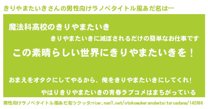 | 意味不明あだ名 | 『住所不定無職きりやまたいき(50歳)』 |