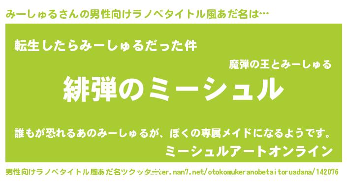 みーしゅるさんの男性向けラノベタイトル風あだ名をツクッター!