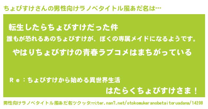 | ヘコむあだ名 | 『豆乳』『ちょびすけ(笑)』 |