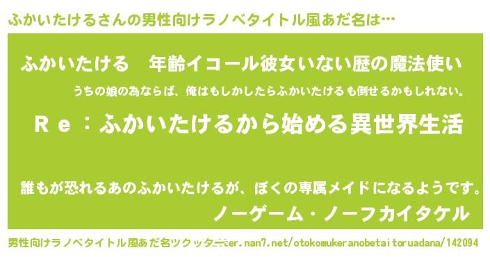 | 意味不明あだ名 | 『自称ふかいたける』 |