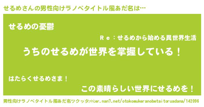 | 胡散臭い通販商品みたいなあだ名 | 『億万長者になれる水晶球…その名も「せるめ」』 |