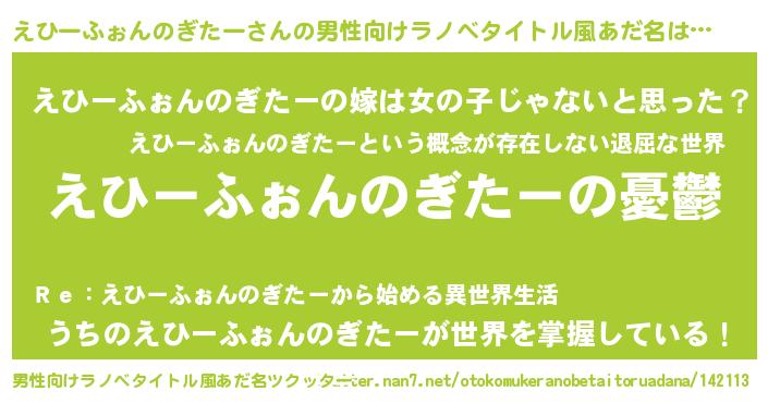 | 胡散臭い通販商品みたいなあだ名 | 『モテモテ間違いなし水晶球…その名も「えひーふぉんのぎたー」』 |