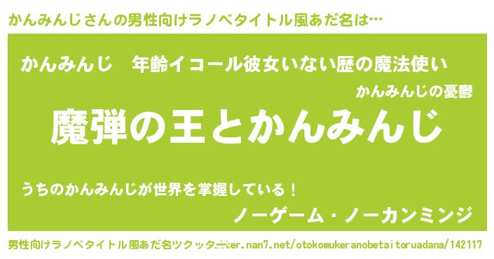 | 意味不明あだ名 | 『住所不定無職かんみんじ(56歳)』 |