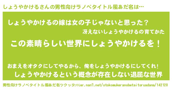 | 意味不明あだ名 | 『住所不定無職しょうやかける(84歳)』 |