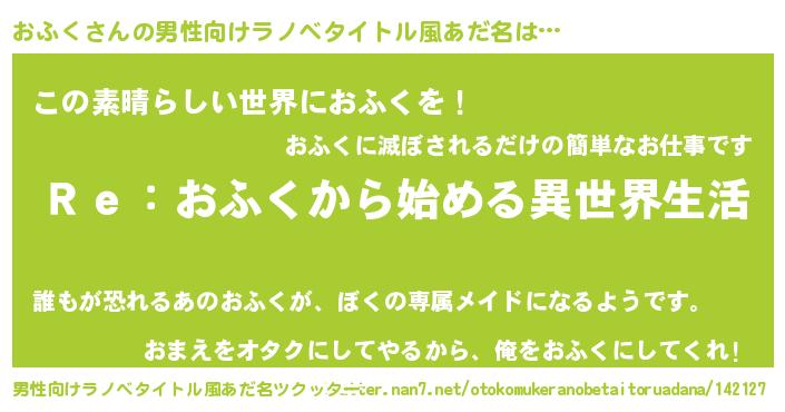 おふくさんの男性向けラノベタイトル風あだ名をツクッター!