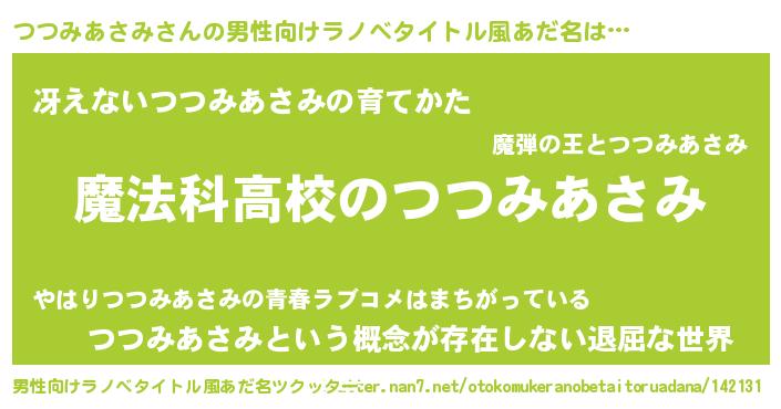| 意味不明あだ名 | 『自称つつみあさみ』 |