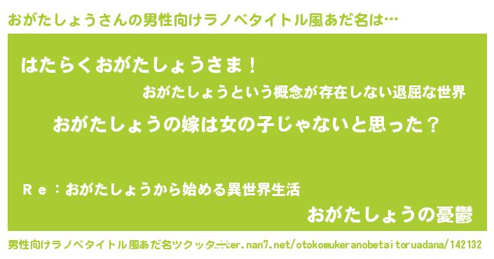 | 女子向けラノベタイトル風あだ名 | 『おがたしょう様がみてる』 |