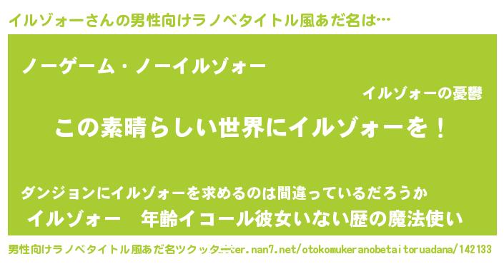| 女子向けラノベタイトル風あだ名 | 『乙女ゲームの破滅フラグしかない悪役イルゾォーに転生してしまった…』 |