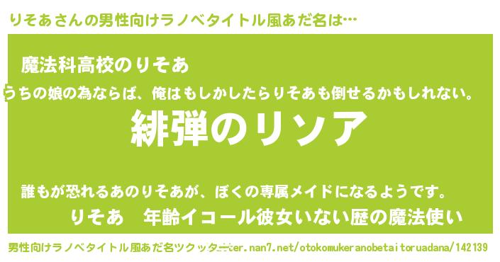 | 女子向けラノベタイトル風あだ名 | 『シンデレラりそあ家の靴箱館』 |