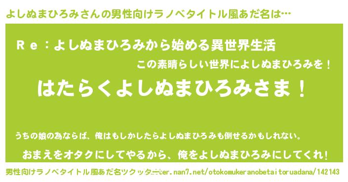 | 肩書あだ名 | 『よしぬまひろみマネージャー』 |