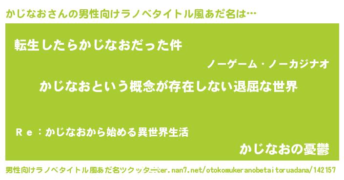 | 女子向けラノベタイトル風あだ名 | 『異世界で失敗しない100のかじなお』 |