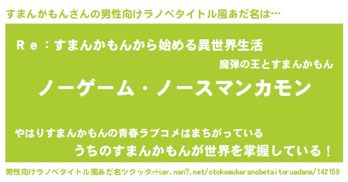 | 女子向けラノベタイトル風あだ名 | 『死神すまんかもんの再婚』 |