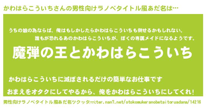 | 伝説のあだ名 | 『秘められし陰陽師かわはらこういち』 |