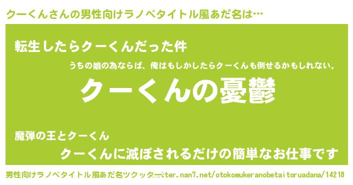 | ヘコむあだ名 | 『クーにー』『なまこ酢』『クーを』 |