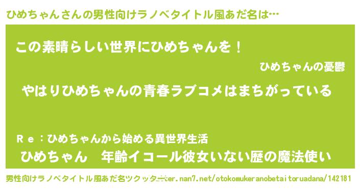| 女子向けラノベタイトル風あだ名 | 『ひめちゃんの雑貨屋さん』 |