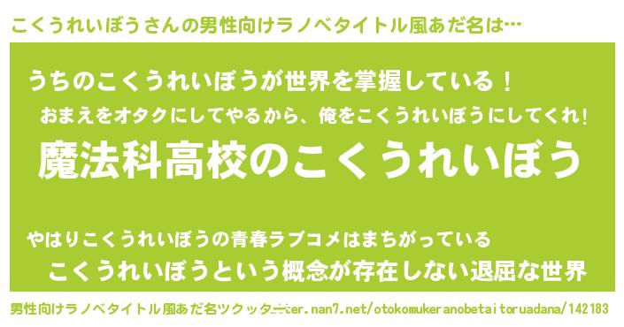 | 胡散臭い通販商品みたいなあだ名 | 『テレビで話題の高麗人参…その名も「こくうれいぼう」』 |