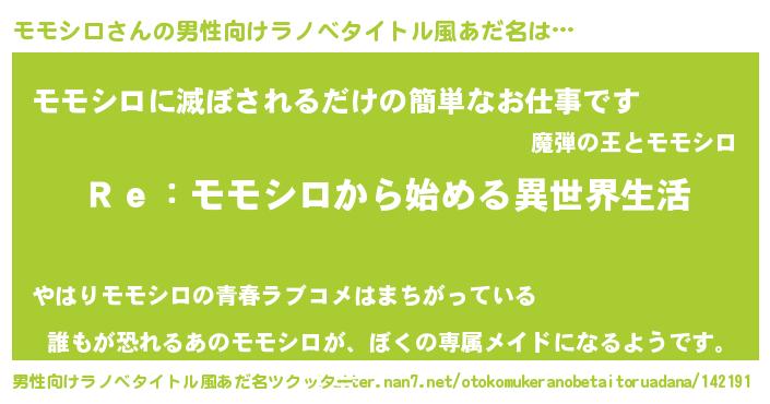 | 女子向けラノベタイトル風あだ名 | 『モモシロストレイドッグス』 |