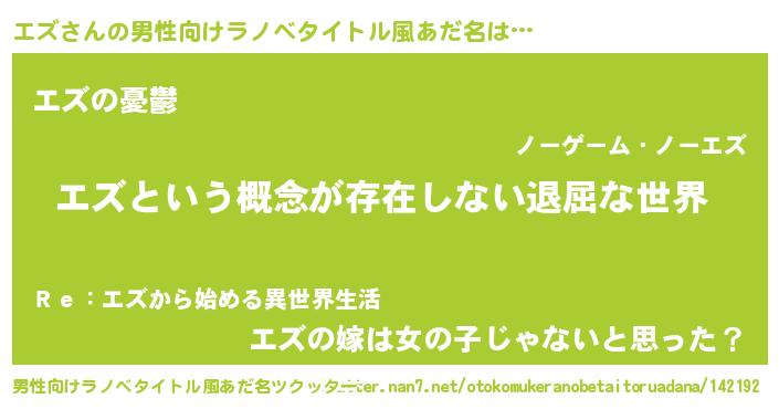 | 女子向けラノベタイトル風あだ名 | 『異世界で失敗しない100のエズ』 |