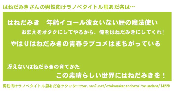 | 女子向けラノベタイトル風あだ名 | 『はねだみきの雑貨屋さん』 |