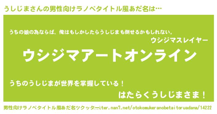 | 胡散臭い通販商品みたいなあだ名 | 『億万長者になれるブレスレット…その名も「うしじま」』 |