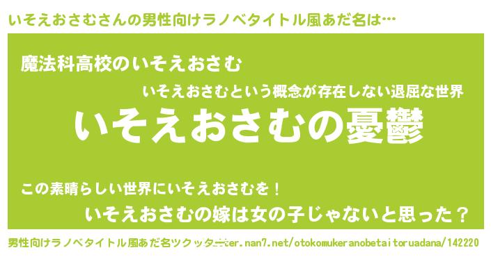 | 肩書あだ名 | 『いそえおさむ社長』『いそえおさむ閣下』 |