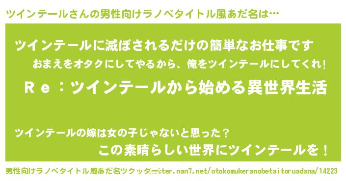 | 女子向けラノベタイトル風あだ名 | 『闇のツインテール』 |