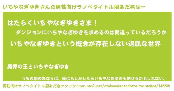 | 女子向けラノベタイトル風あだ名 | 『異世界で失敗しない100のいちやなぎゆき』 |