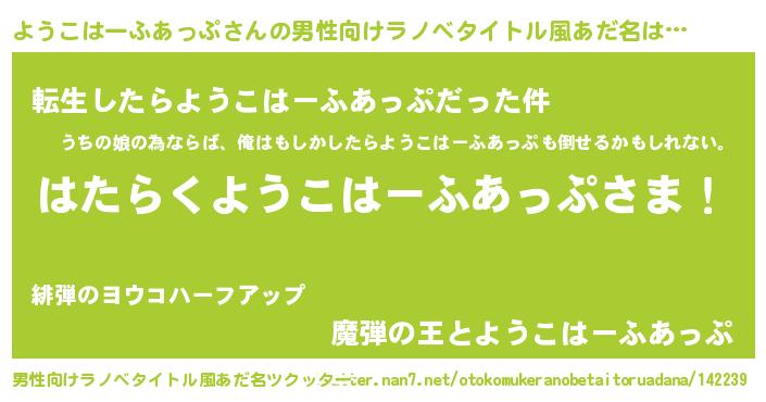 ようこはーふあっぷさんの男性向けラノベタイトル風あだ名をツクッター!