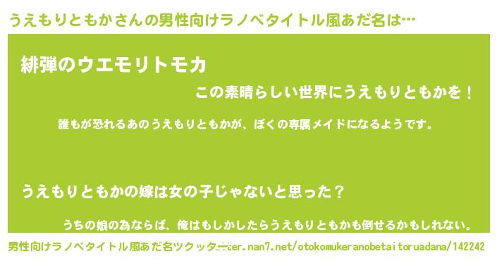 | 女子向けラノベタイトル風あだ名 | 『うえもりともかの契約王妃』 |
