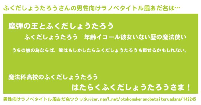 | 女子向けラノベタイトル風あだ名 | 『ふくだしょうたろうの婚約者』 |