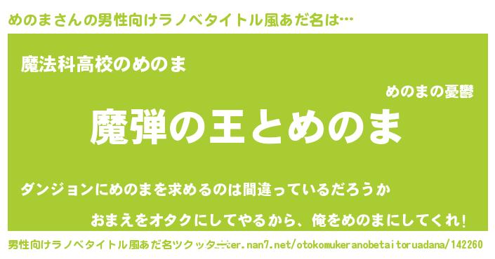 | ヒーロー風カッコイイあだ名 | 『仮面メノダー』『超時空戦士メノマ』 |