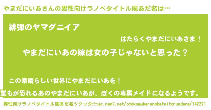 | 女子向けラノベタイトル風あだ名 | 『やまだにいあの卵を拾いまして』 |