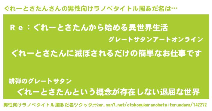 | ヘコむあだ名 | 『ぐれーとさたん(爆)』『ぐれにー』 |