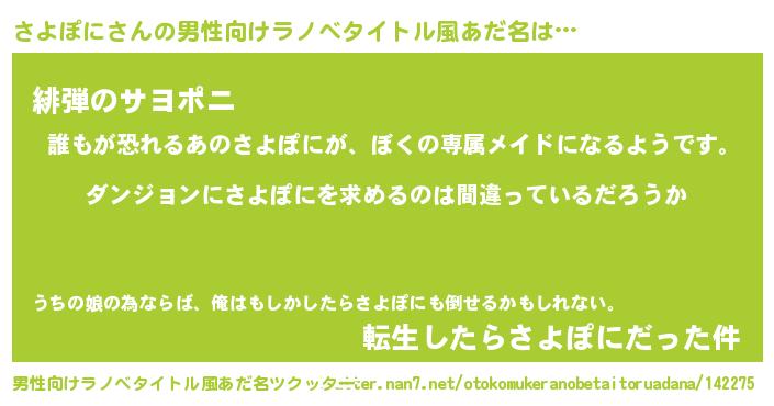 | 胡散臭い通販商品みたいなあだ名 | 『伝統あるサプリメント…その名も「さよぽに」』 |
