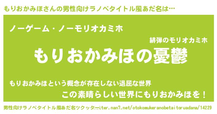| 女子向けラノベタイトル風あだ名 | 『もりおかみほ姫と円卓の騎士』 |