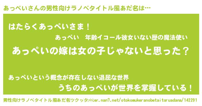 | 女子向けラノベタイトル風あだ名 | 『あっぺい様がみてる』 |