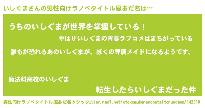 | 女子向けラノベタイトル風あだ名 | 『いしぐまの契約王妃』 |