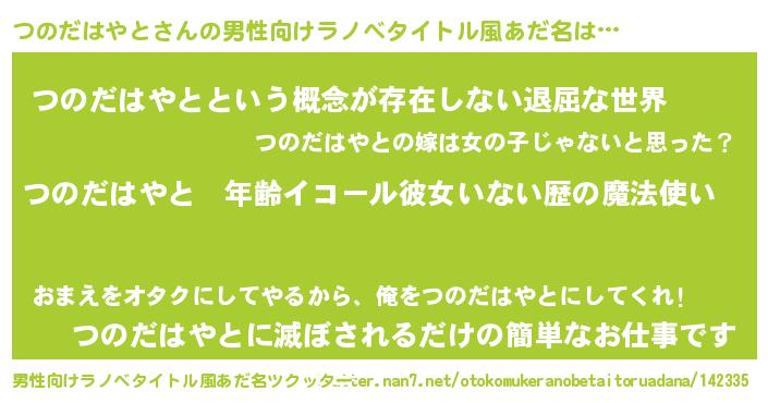 | 女子向けラノベタイトル風あだ名 | 『つのだはやとの玉の輿計画!』 |