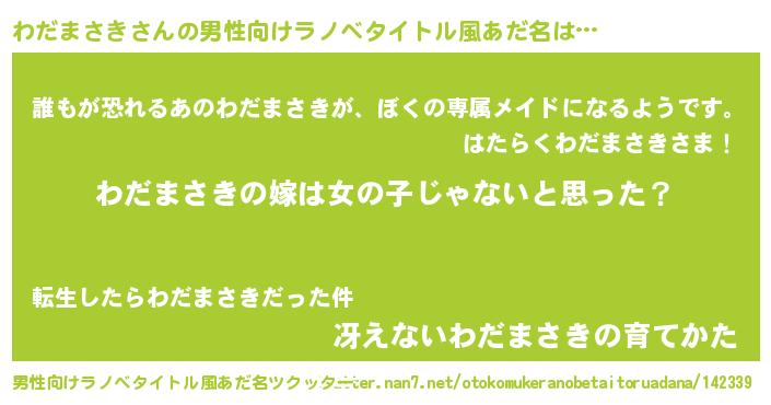 | 女子向けラノベタイトル風あだ名 | 『わだまさき様がみてる』 |