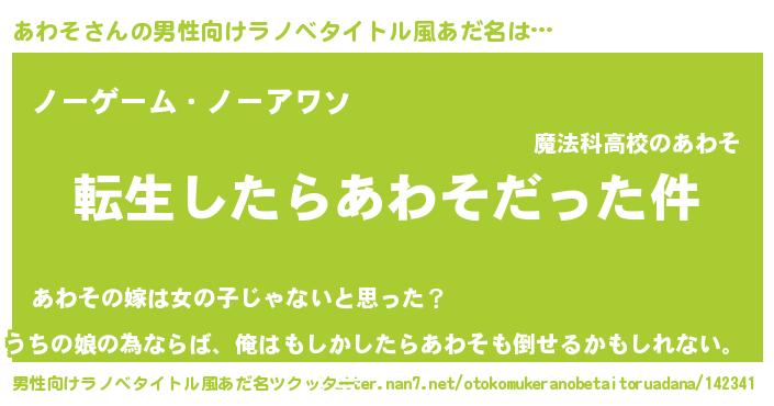 | 意味不明あだ名 | 『もやし科あわそ属』『自称あわそ』 |