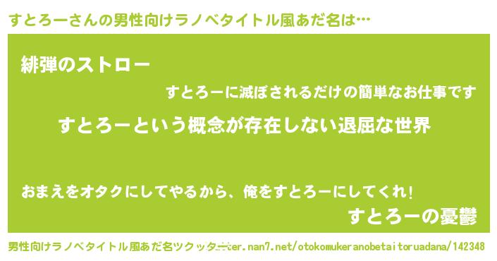 | 胡散臭い通販商品みたいなあだ名 | 『絶対に幸福をもたらす水素水…その名も「すとろー」』 |