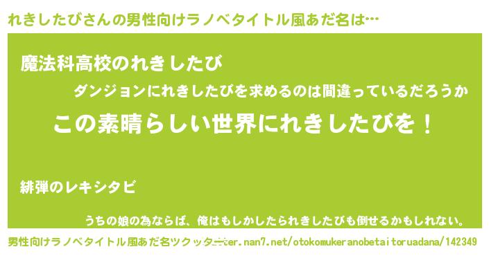 | 意味不明あだ名 | 『住所不定無職れきしたび(40歳)』 |