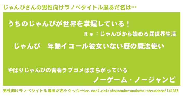 | 女子向けラノベタイトル風あだ名 | 『じゃんびの玉の輿計画!』 |