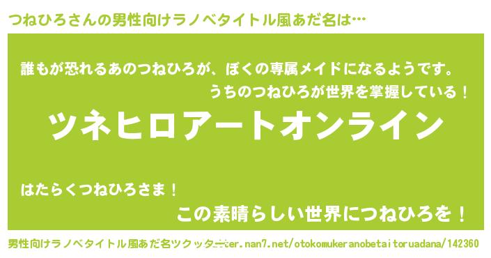 | 女子向けラノベタイトル風あだ名 | 『誰かこのつねひろを説明してください! ~契約から始まるウェディング~』 |