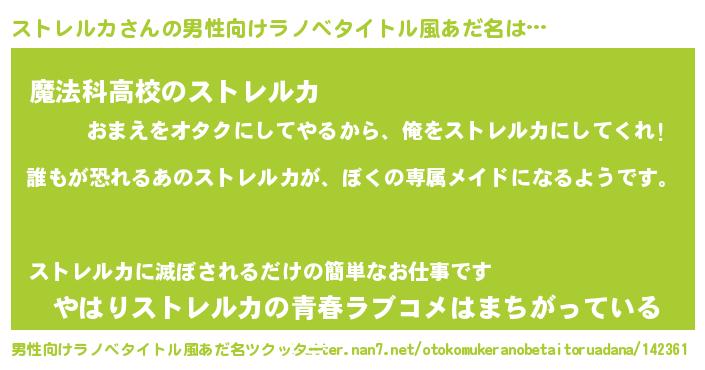 | 意味不明あだ名 | 『永久保存ストレルカ』『自称ストレルカ』 |
