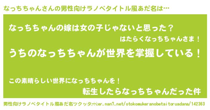 | 女子向けラノベタイトル風あだ名 | 『男装なっちちゃんの憂鬱な任務』 |