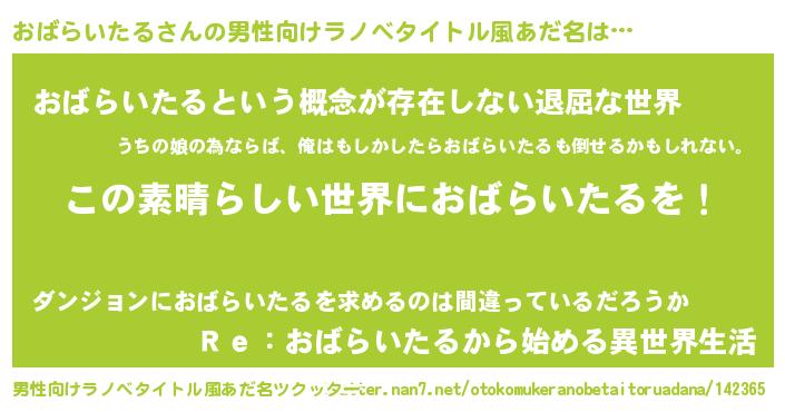 | 胡散臭い通販商品みたいなあだ名 | 『あなたにだけ特別に提供する100年もののヴィンテージワイン…その名も「おばらいたる」』 |
