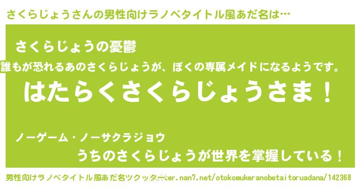 | 胡散臭い通販商品みたいなあだ名 | 『必ず成功するブレスレット…その名も「さくらじょう」』 |