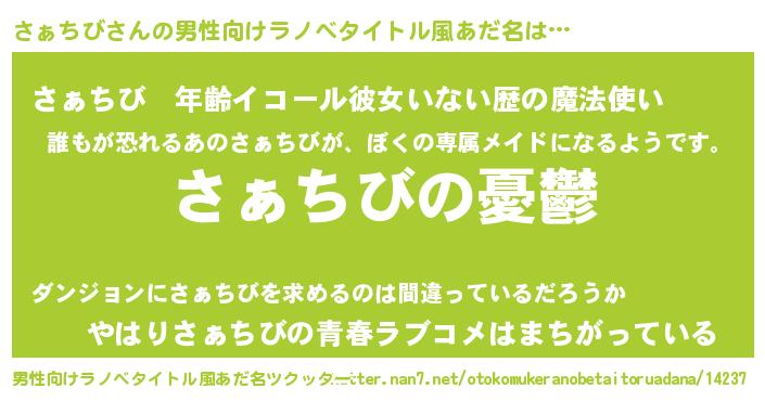 | 胡散臭い通販商品みたいなあだ名 | 『必ず成功する霊験あらたかなお札…その名も「さぁちび」』 |