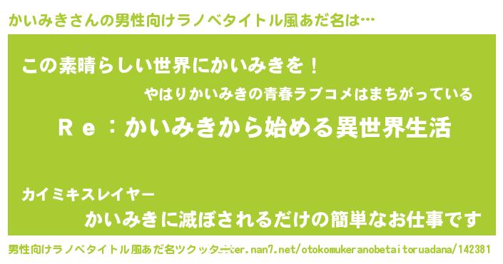 | 意味不明あだ名 | 『自称かいみき』『かいみきフォーエバー』 |